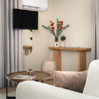 Our apartments are thoughtfully designed for families or groups of friends, featuring fully equipped kitchens, spacious living areas, and private furnished balconies—creating a true home away from home.